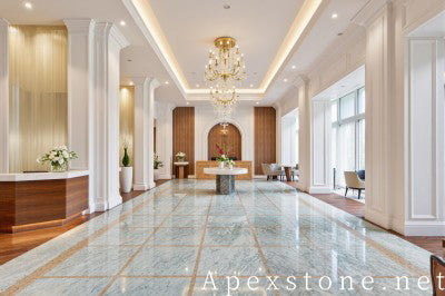 Proper lighting is crucial to accentuate the marble's luminosity and depth.