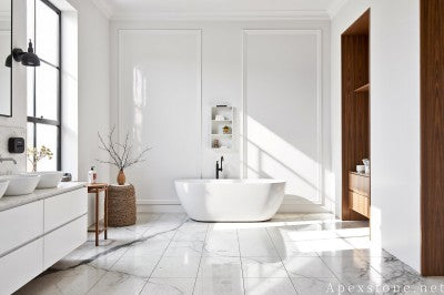 The inherent color scheme is both versatile and luxurious. The bright base acts as a perfect canvas to make spaces feel larger and more open, while the soft veining adds artistic depth.