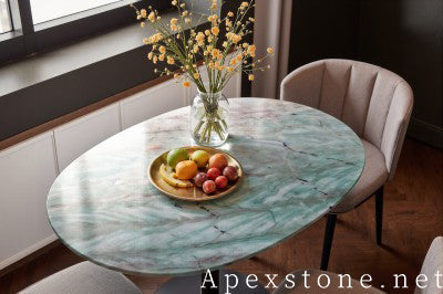 Crafted from genuine White Quartzite—a premium natural stone known as Alexandrita Fantasy—this tabletop combines exceptional durability with unique beauty. It is harder than granite and highly resistant to scratches and heat. Each slab features a bright white background adorned with distinctive crystalline patterns and subtle grey and gold veining, ensuring no two tables are exactly alike. A professional-grade sealant is applied to protect against stains while maintaining the stone's natural luster for years to come.